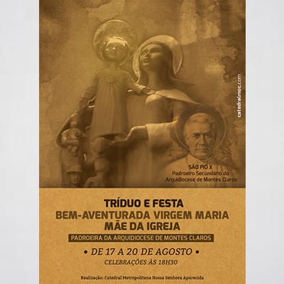 “Bem-aventurada Virgem Maria, Mãe da Igreja e padroeira da Arquidiocese de Montes Claros”. A Catedral Nossa Senhora Aparecida vai realizar o Tríduo e Festa da Bem Aventurada Virgem Maria, Mãe da Igreja e padroeira da Arquidiocese de Montes Claros. Os festejos iniciam nesta quinta-feira, 17 de agosto com Missa às 18h30. As celebrações também serão […]