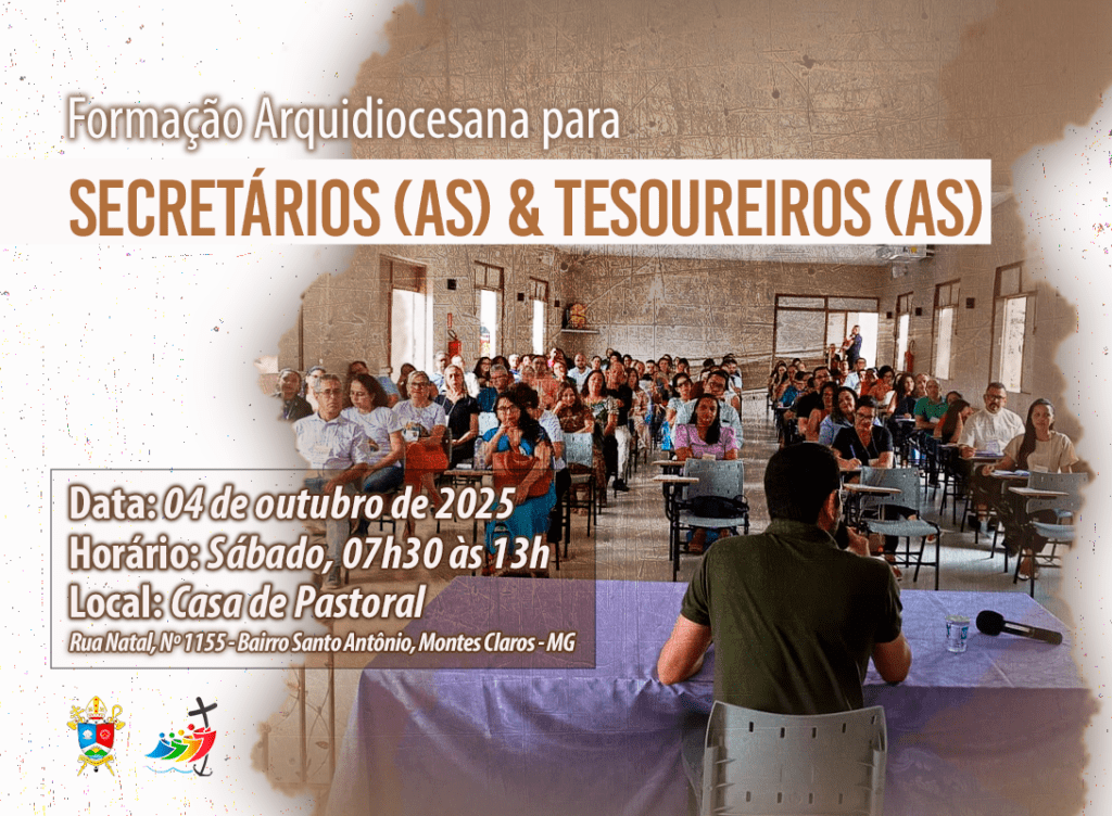 A Arquidiocese de Montes Claros promoverá, no dia 04 de outubro (sábado), o Encontro Arquidiocesano de Formação para Secretários(as) e Tesoureiros(as) das paróquias, setores administrativos da Arquidiocese e Seminário. O momento tem como objetivo fortalecer a missão de serviço administrativo e pastoral, promovendo maior integração, clareza e responsabilidade no exercício das funções. Data: 04/10, sábadoHorário: […]