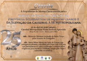 A Arquidiocese de Montes Claros celebra, no dia 25 de abril de 2026, o Jubileu de Prata pelos 25 anos da criação da Província Eclesiástica e da elevação da Catedral à condição de Sé Metropolitana. A data recorda um momento decisivo na história da Igreja no Norte e Noroeste de Minas Gerais, cuja caminhada teve início com a instalação da Diocese, em 1911, quando Dom João Antônio Pimenta tomou posse como seu primeiro bispo, dando início a uma trajetória marcada pela dedicação pastoral e pelo crescimento da Igreja local.