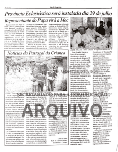 Na segunda e terceira edições dedicadas ao tema, o Far-Elo de Vida trouxe as manchetes “Província Eclesiástica será instalada dia 29 de julho” e “Representante do Papa virá a Moc”, confirmando a presença do Núncio Apostólico no Brasil, Dom Alfio Rapisarda, para presidir a celebração solene.