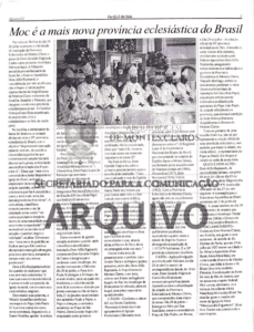 O jornal informava que a cerimônia aconteceria em 29 de julho de 2001, às 9h30, na Catedral de Nossa Senhora Aparecida, marcando oficialmente a instalação da Província Eclesiástica de Montes Claros e a elevação da Diocese à condição de Arquidiocese e Sé Metropolitana.