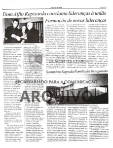 Outro destaque foi a informação de que Dom Geraldo Majela de Castro viajaria a Roma para receber do Papa São João Paulo II o pálio, insígnia própria dos arcebispos metropolitanos, no dia 29 de junho.