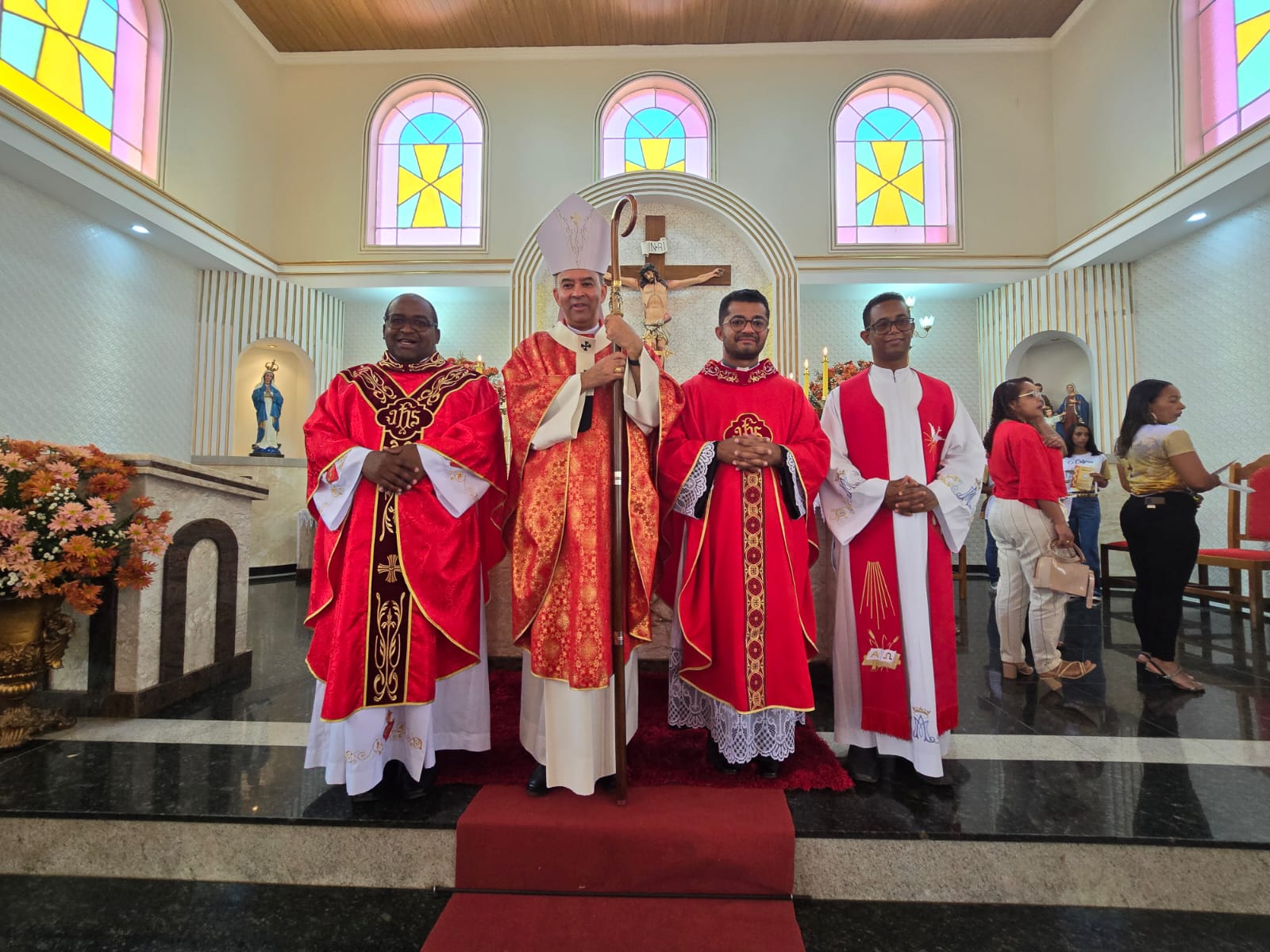 As celebrações contaram com a presença do pároco, padre Antônio Teixeira, e dos vigários paroquiais, padre Márcio Antônio Rosa da Silva e padre Robson da Silva Cunha, que concelebraram ambas as missas junto ao arcebispo.