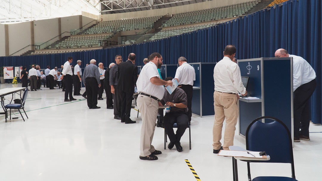 Só será liberado o registro do voto após apresentação da carteira eclesial e a assinatura na lista de presença. Após a aproximação da carteira do bispo no leitor, o sistema será aberto para que seja registrado o voto.