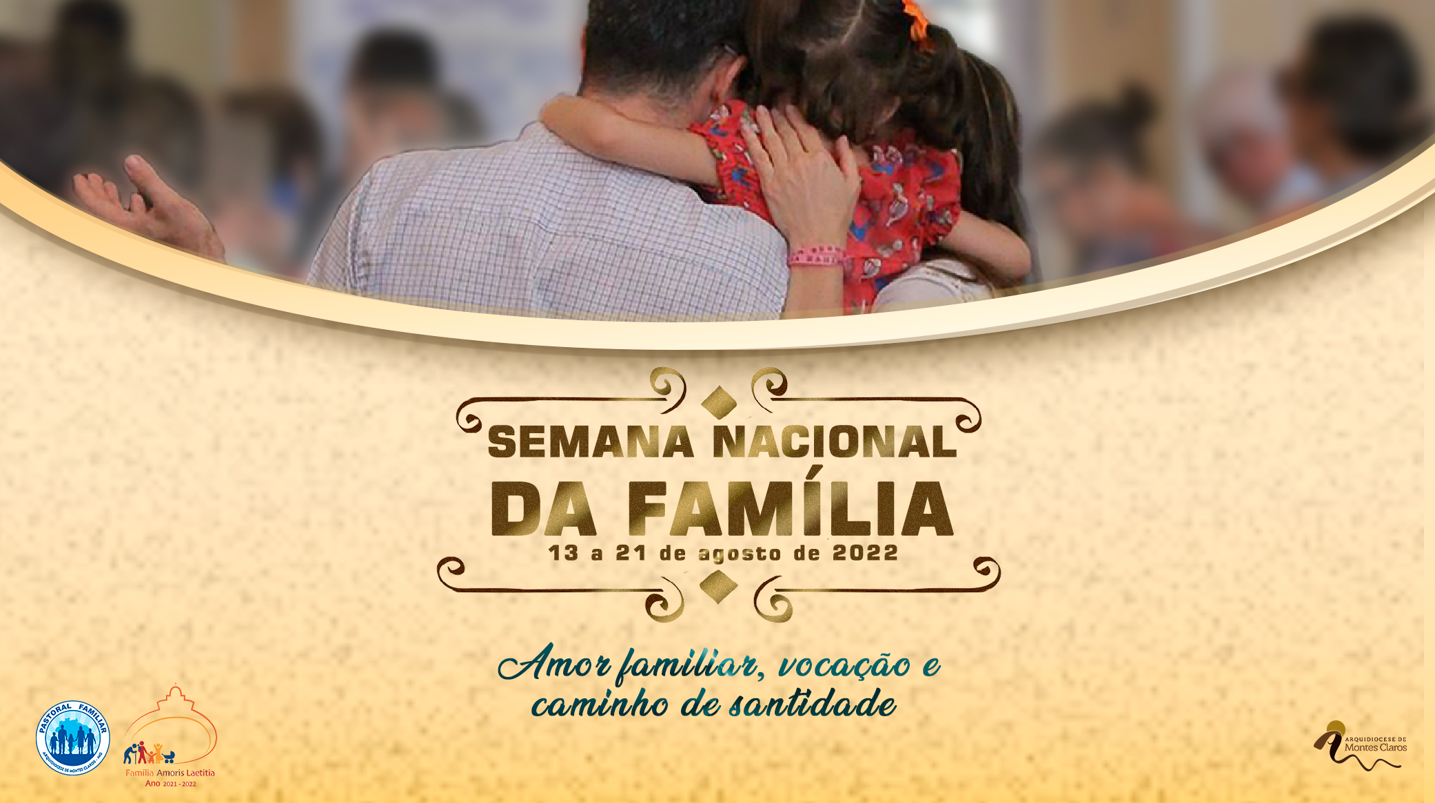 A Semana Nacional da Família 2022 tem como tema “Amor familiar, vocação e caminho de santidade!”, em sintonia com o X Encontro Mundial das Famílias convocado pelo Papa Francisco e o XVI Congresso Nacional da Pastoral Familiar, marcado para o final de agosto em Governador Celso Ramos (SC). A Semana da Família acontecerá nos dias 13 a 21 de agosto de 2022 e a Comissão Arquidiocesana da Pastoral Familiar de Montes Claros, responsável por organizar a Semana na Arquidiocese de Montes Claros, já disponibilizou a programação e subsídios propostos. (Aos final desta página, você encontra todo o material para baixar.)