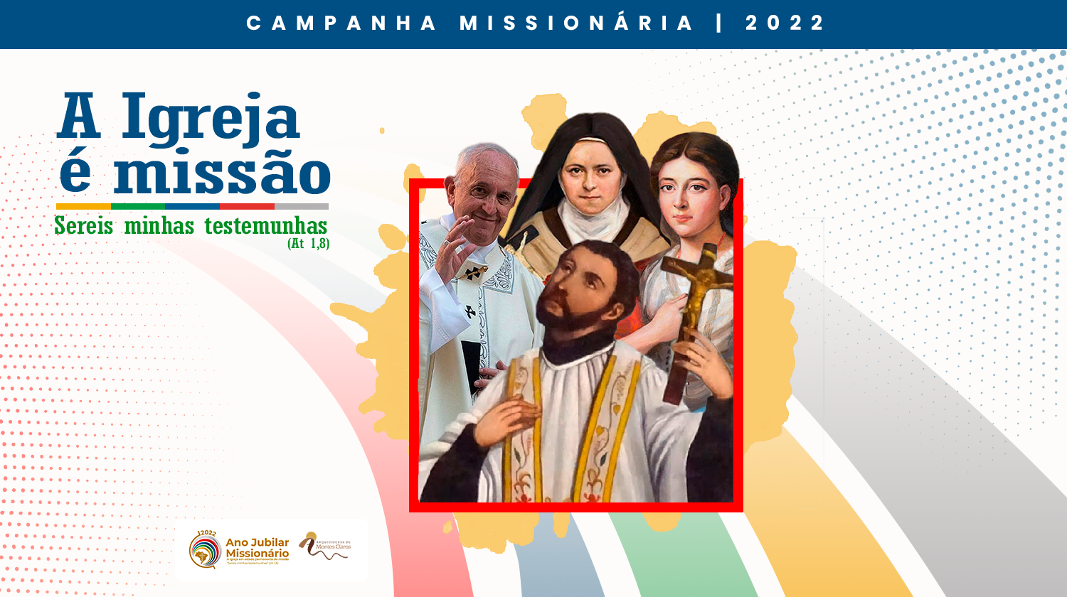 A campanha Missionária 2022 propõe o tema “A Igreja é missão”. A inspiração bíblica e lema, ”Serei minhas testemunhas” (At 1,8), foram motivadas pela Mensagem do Papa Francisco para o Dia Mundial das Missões. Neste ano jubilar missionário, o Conselho Missionário Diocesano (COMIDI) da Arquidiocese de Montes Claros, em sintonia com a programação das Pontifícias Obras Missionárias (POM) e com a caminhada pastoral de nossa arquidiocese propôs uma programação para ser animada em nossas comunidades e acompanhada durante todo o mês de outubro.