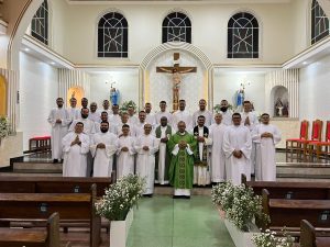 Entre os dias 9 e 13 de outubro, 24 seminaristas do Seminário Maior Imaculado Coração de Maria, pertencentes à Arquidiocese de Montes Claros, participaram da Semana Missionária, realizada na Paróquia Santíssimo Coração de Jesus, em Coração de Jesus-MG. Com o tema “Como discípulos missionários a caminho da Esperança” e o lema “Vossa palavra é minha Esperança” (Sl 113, 114), a semana teve como objetivo reacender a chama da fé e da esperança na comunidade local, seguindo o chamado missionário essencial da Igreja.