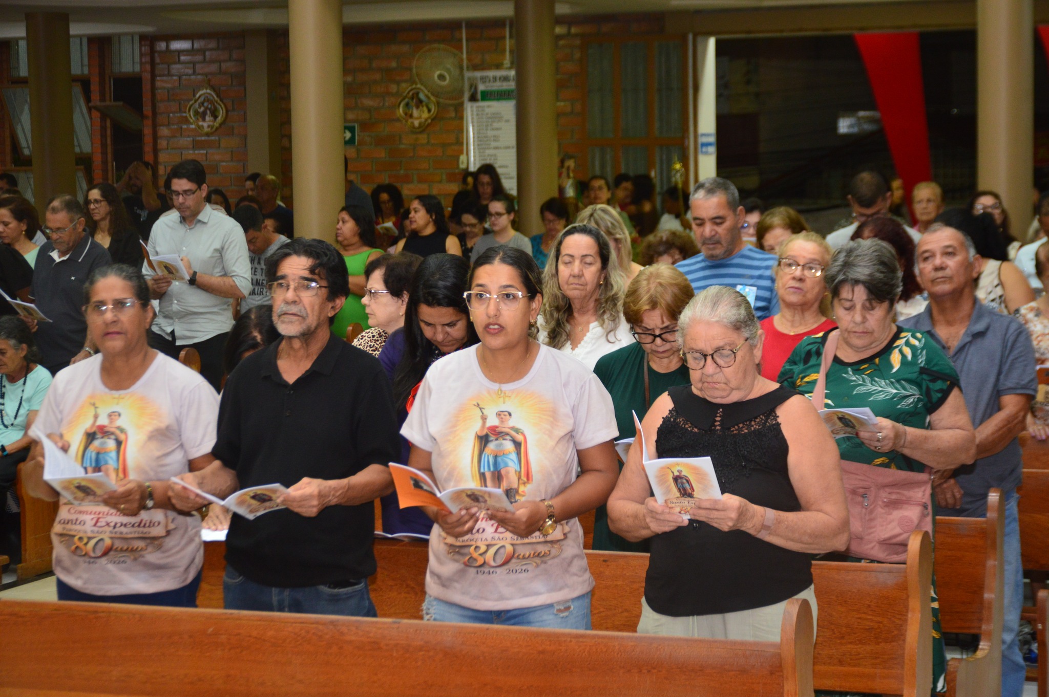 A celebração integrou a programação jubilar dos 80 anos da comunidade, marcados pela gratidão a Deus pela caminhada de evangelização e pela renovação da fé dos devotos de Santo Expedito, conhecido como intercessor das causas urgentes e justas.