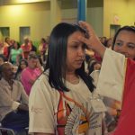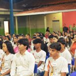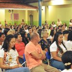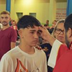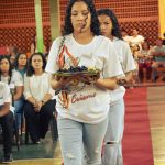 A cerimônia aconteceu na quadra esportiva de uma escola e contou com a participação ativa das comunidades paroquiais.