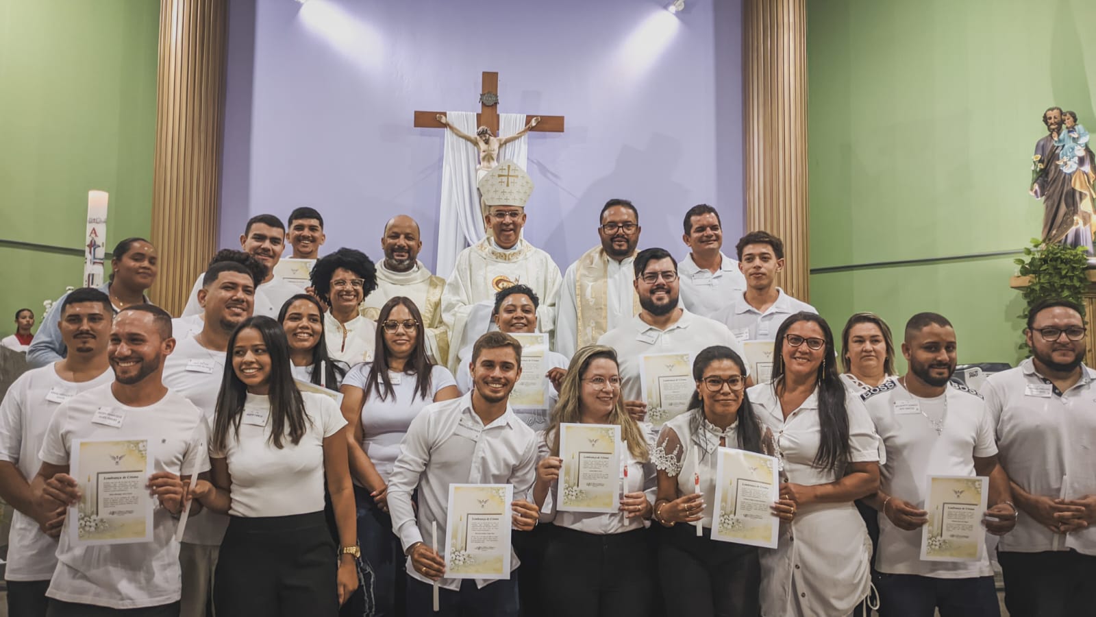 Durante a celebração, os crismandos renovaram a fé e confirmaram o compromisso com Cristo e com a Igreja, recebendo o sacramento que fortalece a vida cristã e envia à missão evangelizadora.
