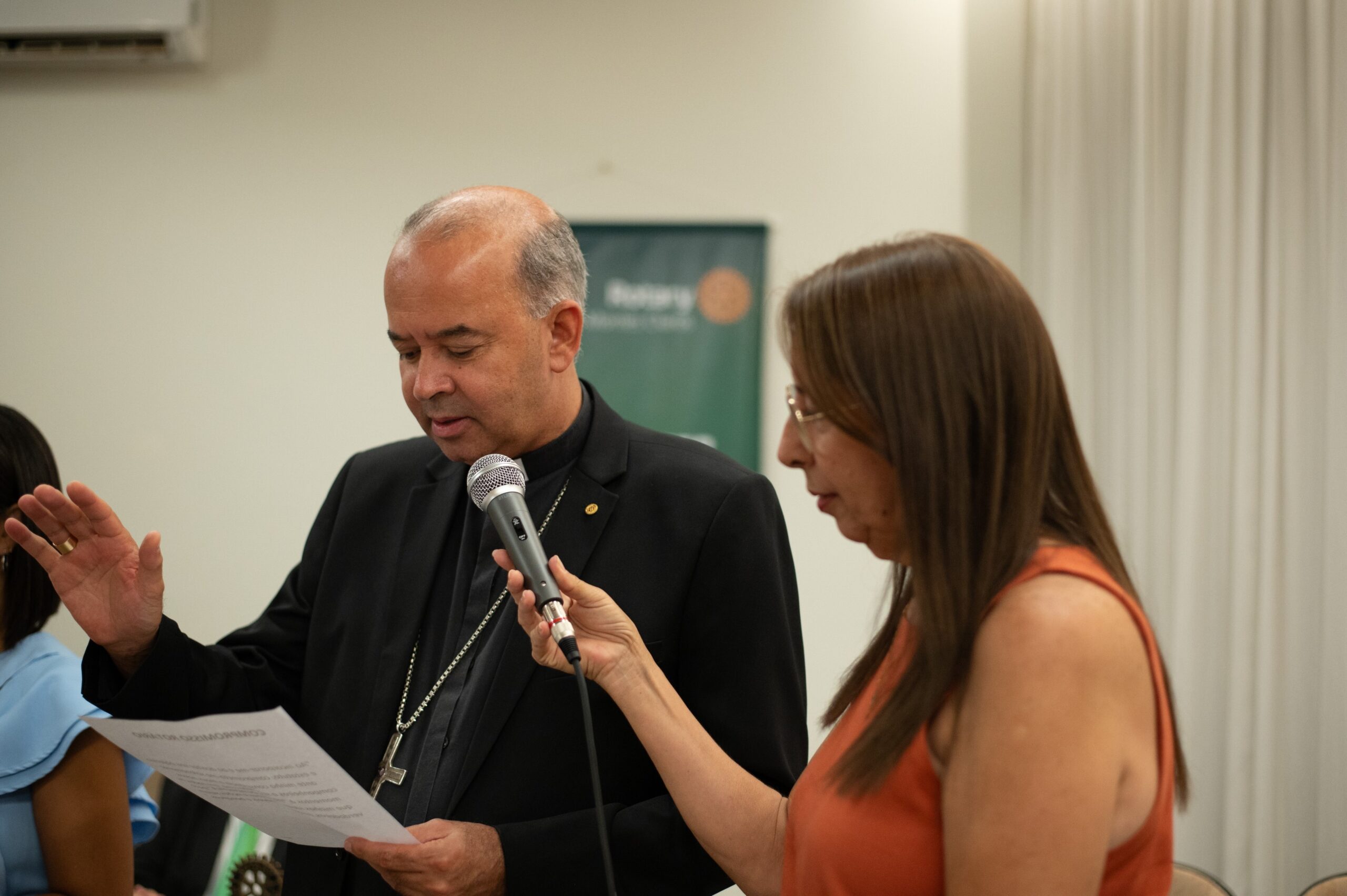 A indicação do Arcebispo partiu da rotariana e leiga atuante na Arquidiocese, Neli Pimenta, que também foi sua madrinha de posse. “Ele é uma pessoa que gosta de gente, que gosta de servir. Sabemos que ele vai abrilhantar nosso clube e nos ajudar nas ações sociais com seu olhar voltado para o próximo”, comentou Neli. Durante o rito, ela realizou a afixação do distintivo (o “pin” rotário). Juntamente com o Arcebispo, também tomou posse como sócia a senhora Sílvia Neves de Souza, apadrinhada por Marcelo Lacerda.