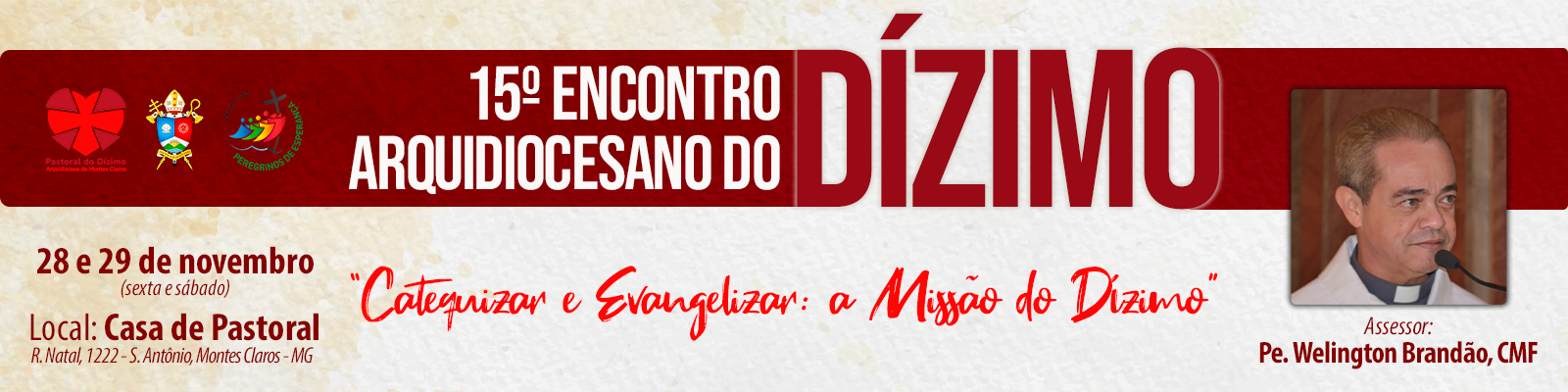 A Arquidiocese de Montes Claros convida todos os agentes da Pastoral do Dízimo para participarem do 15º Encontro Arquidiocesano do Dízimo, que acontecerá nos dias 28 e 29 de novembro de 2025, na Casa de Pastoral, em Montes Claros. Com o tema “Evangelizar e Catequizar: a missão do Dízimo”, o encontro tem como objetivo fortalecer a espiritualidade e o compromisso pastoral dos agentes que atuam na evangelização por meio do dízimo.