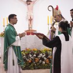 Durante a missa, foi realizado o rito de posse, que incluiu a entrega dos locais e sinais do ministério presbiteral, simbolizando o exercício do ofício de pastor que Pe. Hugo Rafael assume de forma plena nesta porção do povo de Deus. Pe. Hugo já vinha desempenhando seu serviço na paróquia como administrador paroquial e agora, com essa posse, oficializa sua missão como pároco.