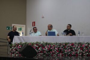 Após a oração inicial, o Pe. Harlley Caldeira, Vigário Geral da Arquidiocese de Montes Claros e Administrador Paroquial na Paróquia São Pedro Apóstolo, em Montes Claros, explanou sobre a dimensão teológica dos Sacramentos de Iniciação à Vida Cristã.