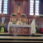 A II Romaria Arquidiocesana da PASCOM encerrou com a celebração da Santa Missa no Santuário, presidida pelo Arcebispo Metropolitano de Montes Claros, Dom José Carlos de Souza Campos e concelebrada pelo Pe. George Luis Cardoso Silva, Coordenador do Secretariado para a Comunicação da Arquidiocese de Montes Claros, e pelo Pe. João Rafael.