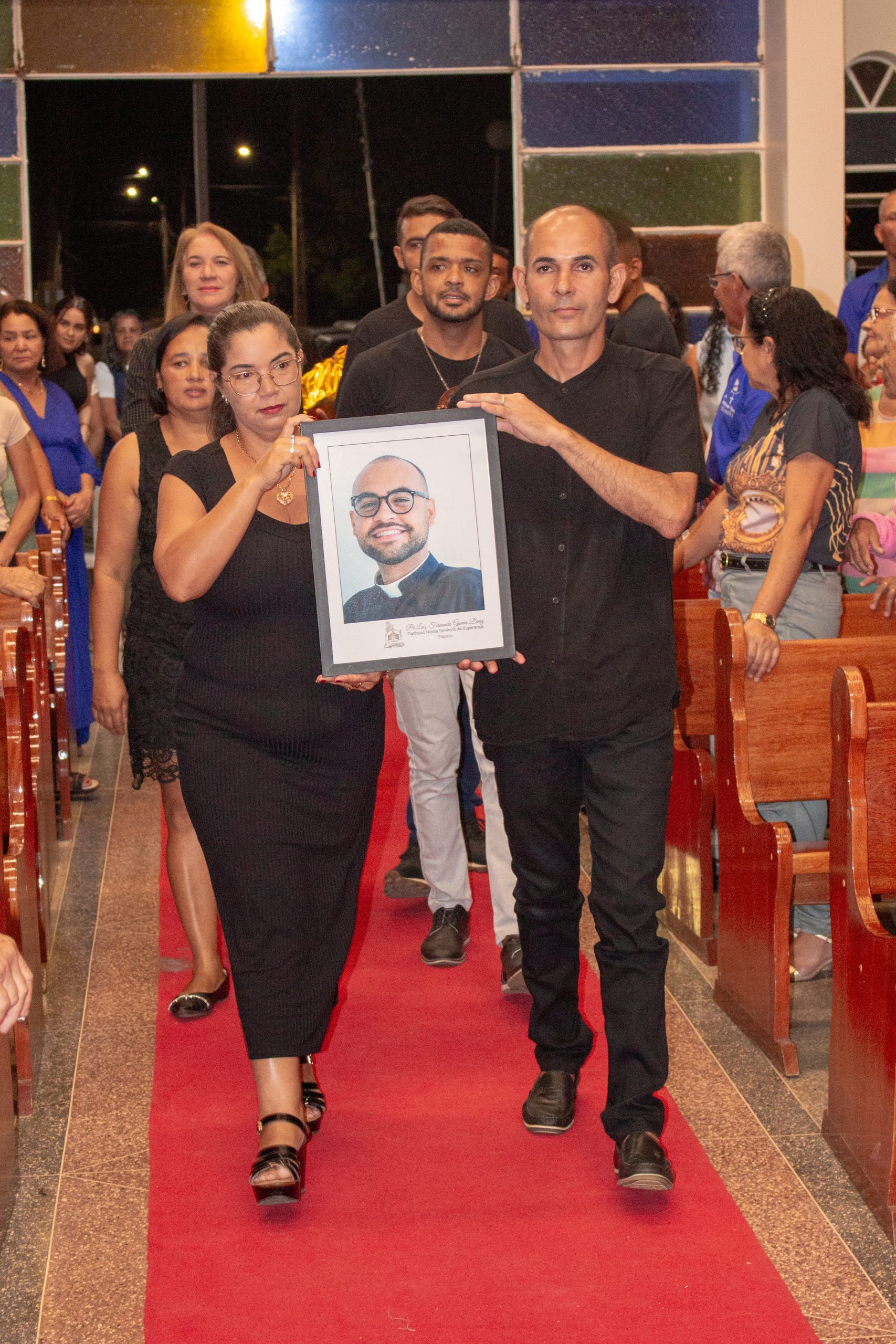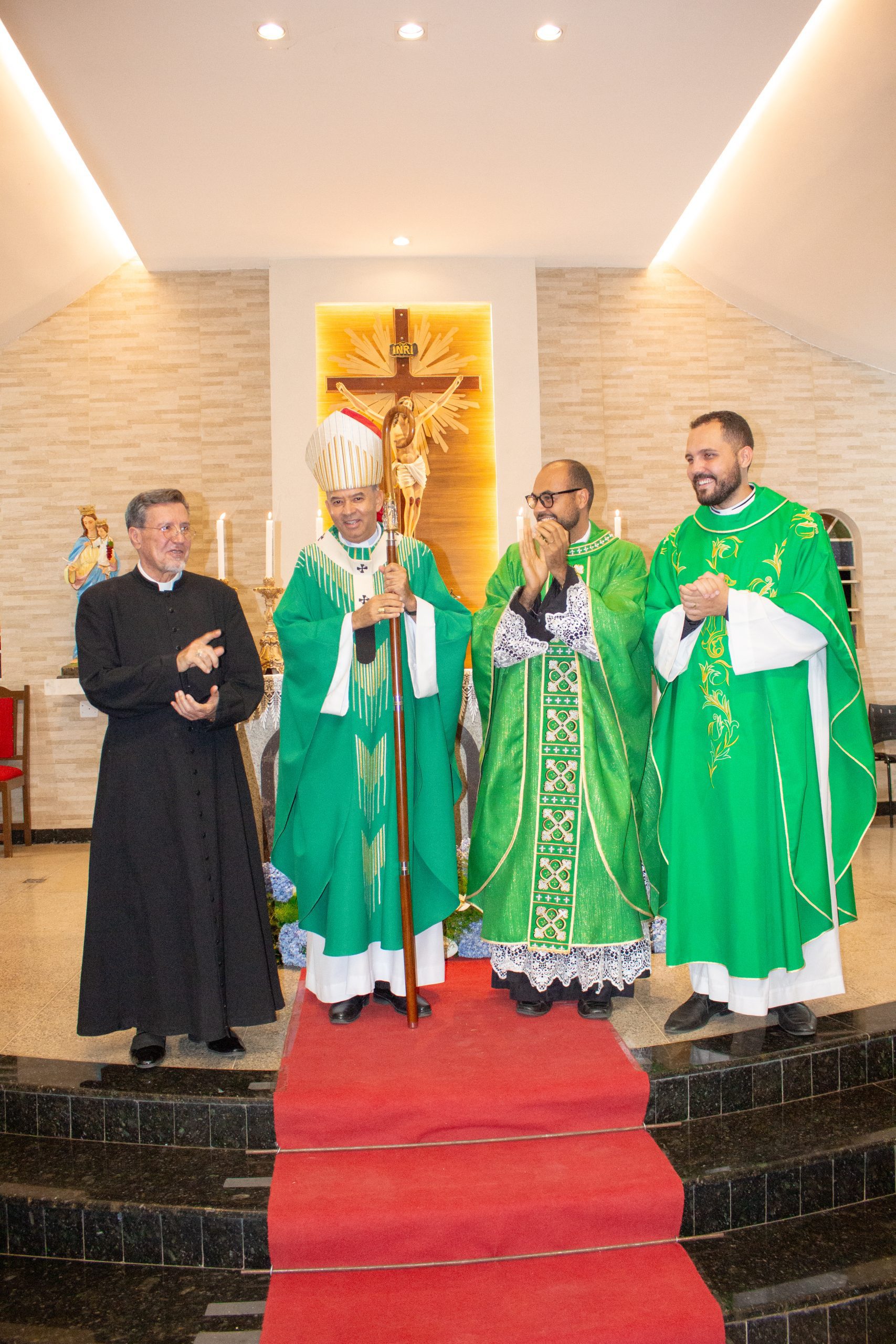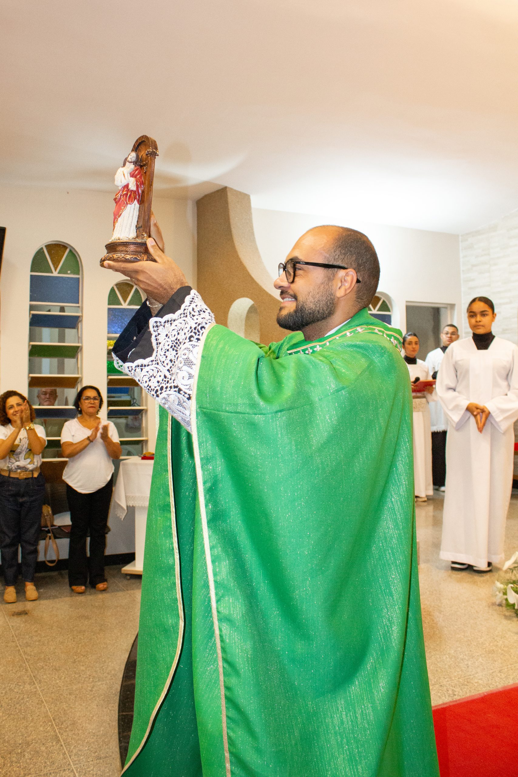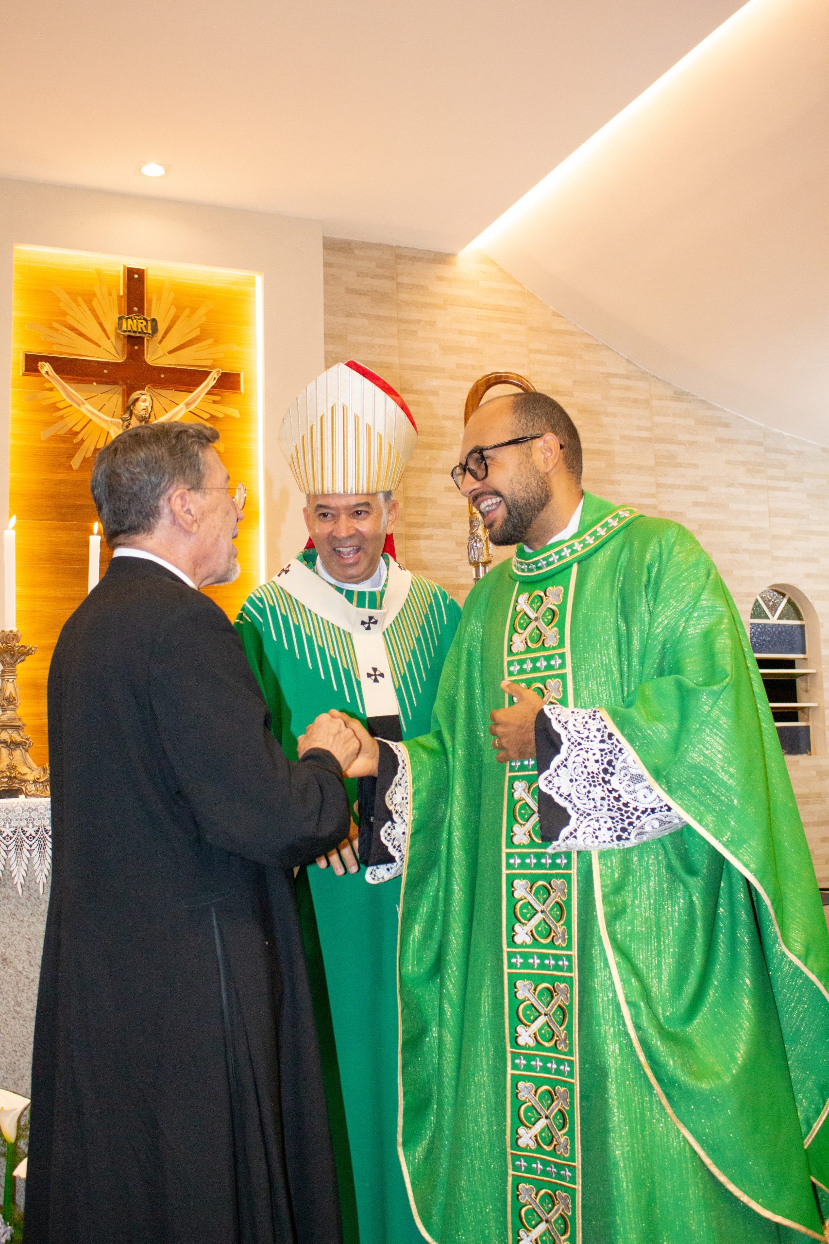 A Missa de posse contou com a presença de vários amigos sacerdotes e diáconos, evidenciando o apoio ao novo pároco e à comunidade. Estavam presentes o Pe. João Rafael Marques de Oliveira, vigário paroquial na Paróquia São João Batista, o Pe. Valdomiro Soares Machado (Frei Valdo), pároco na Paróquia São José Operário, além dos diáconos permanentes Raimundo Mendes Ferreira e Sidney Silva Costa.