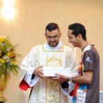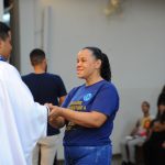 Durante a celebração, o diácono transitório Airton Fernandes de Oliveira foi acolhido pela comunidade paroquial, onde iniciará seu estágio diaconal. Também estiveram presentes os diáconos permanentes Alduir dos Santos Carvalho e Elio Cardoso da Cruz, que auxiliaram na liturgia.