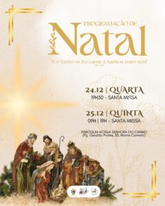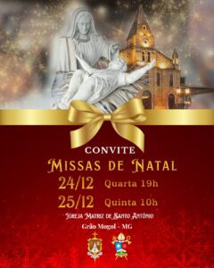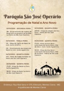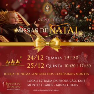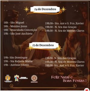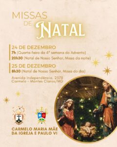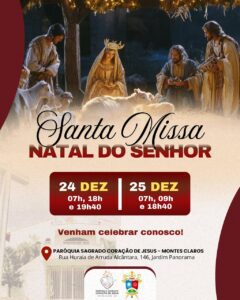 Em comunhão com toda a Igreja, a Arquidiocese de Montes Claros convida os fiéis a participarem das celebrações natalinas em suas paróquias e comunidades. Abaixo, disponibilizamos a programação completa das Missas dos dias 24 e 25 de dezembro, organizadas por paróquia e cidade, para que todos possam se unir na celebração deste mistério de fé, amor e salvação.