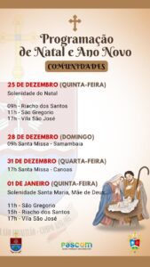 Que, ao redor da manjedoura, possamos renovar nossa esperança, fortalecer os laços de fraternidade e deixar que a Luz de Cristo ilumine nossas famílias, comunidades e toda a sociedade.