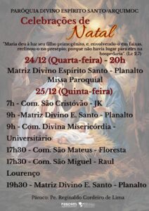 A Igreja, com sabedoria, convida os fiéis a contemplarem este mistério de forma profunda e orante, por meio das diversas celebrações litúrgicas do Natal, que se estendem da Vigília (24 de dezembro) à Solenidade do Natal (25 de dezembro), com Missas próprias que ajudam a saborear, quase “em câmara lenta”, o Acontecimento que mudou o curso da história: o Verbo se fez carne e habitou entre nós.