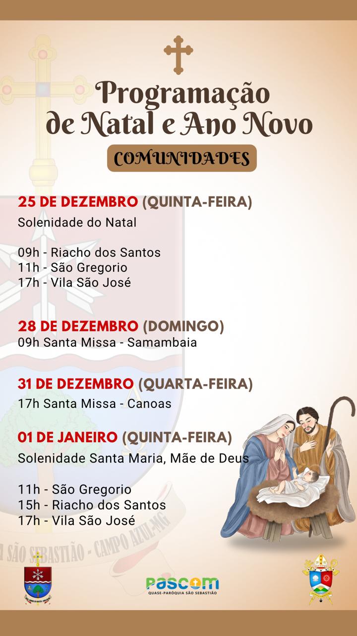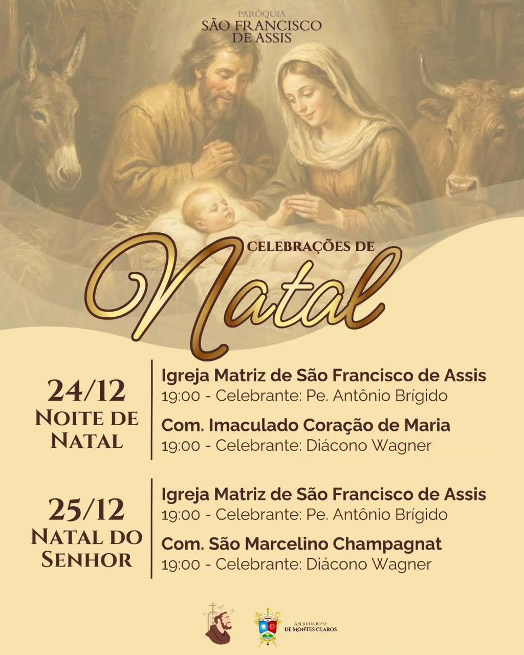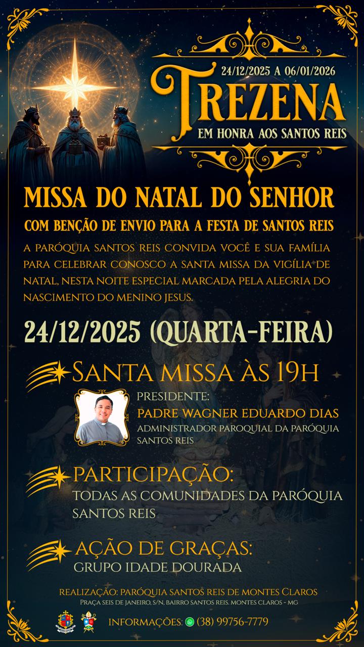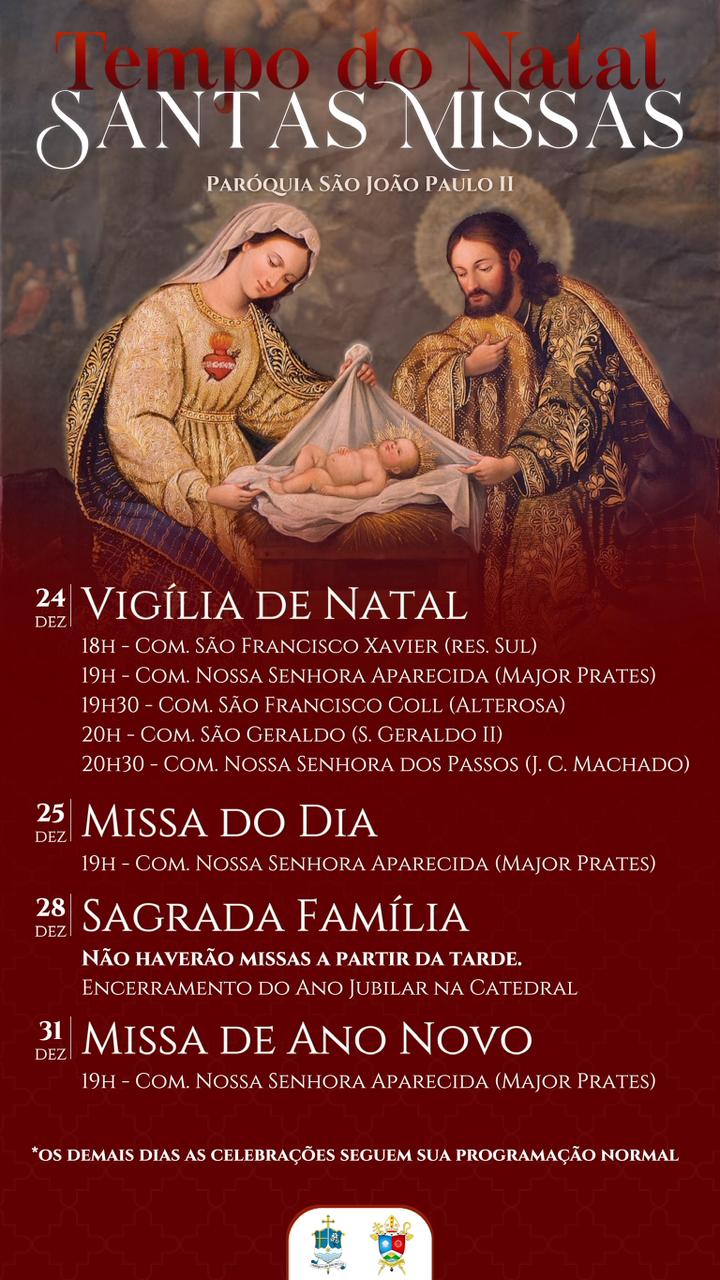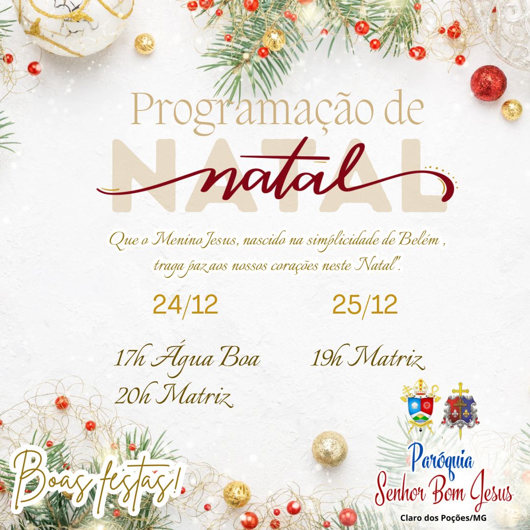 Em comunhão com toda a Igreja, a Arquidiocese de Montes Claros convida os fiéis a participarem das celebrações natalinas em suas paróquias e comunidades. Abaixo, disponibilizamos a programação completa das Missas dos dias 24 e 25 de dezembro, organizadas por paróquia e cidade, para que todos possam se unir na celebração deste mistério de fé, amor e salvação.