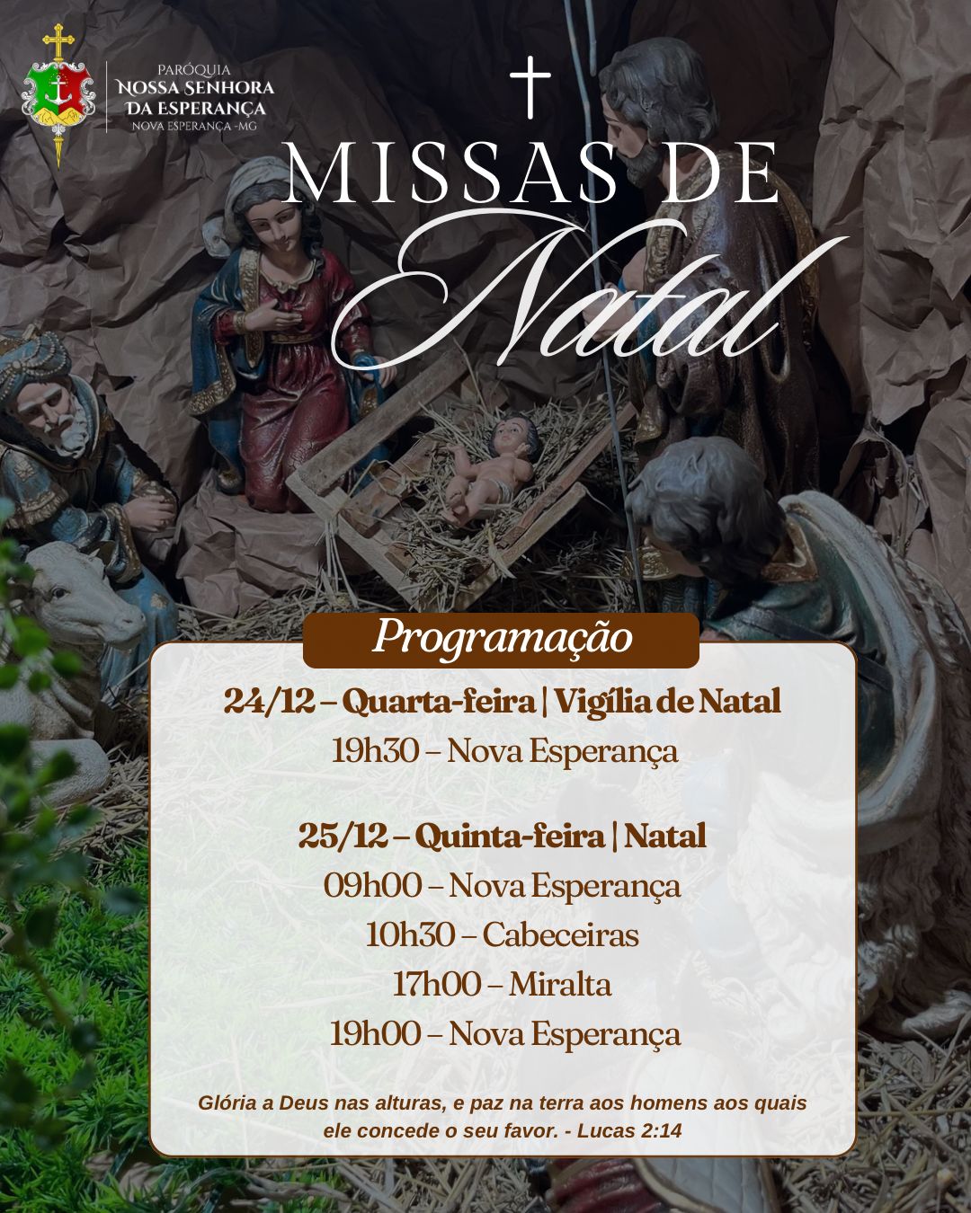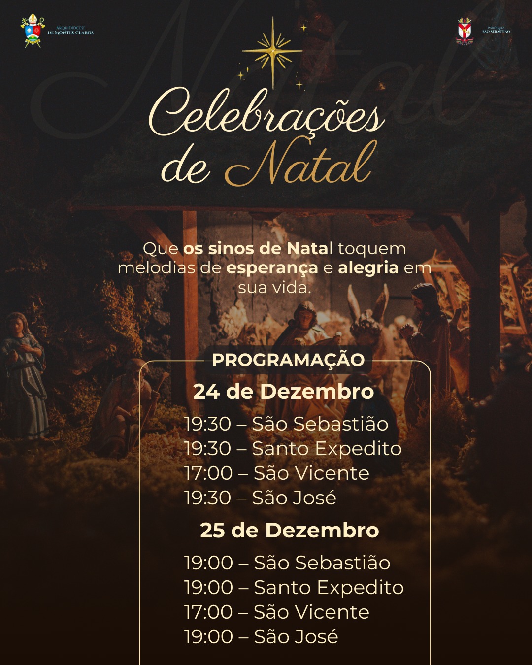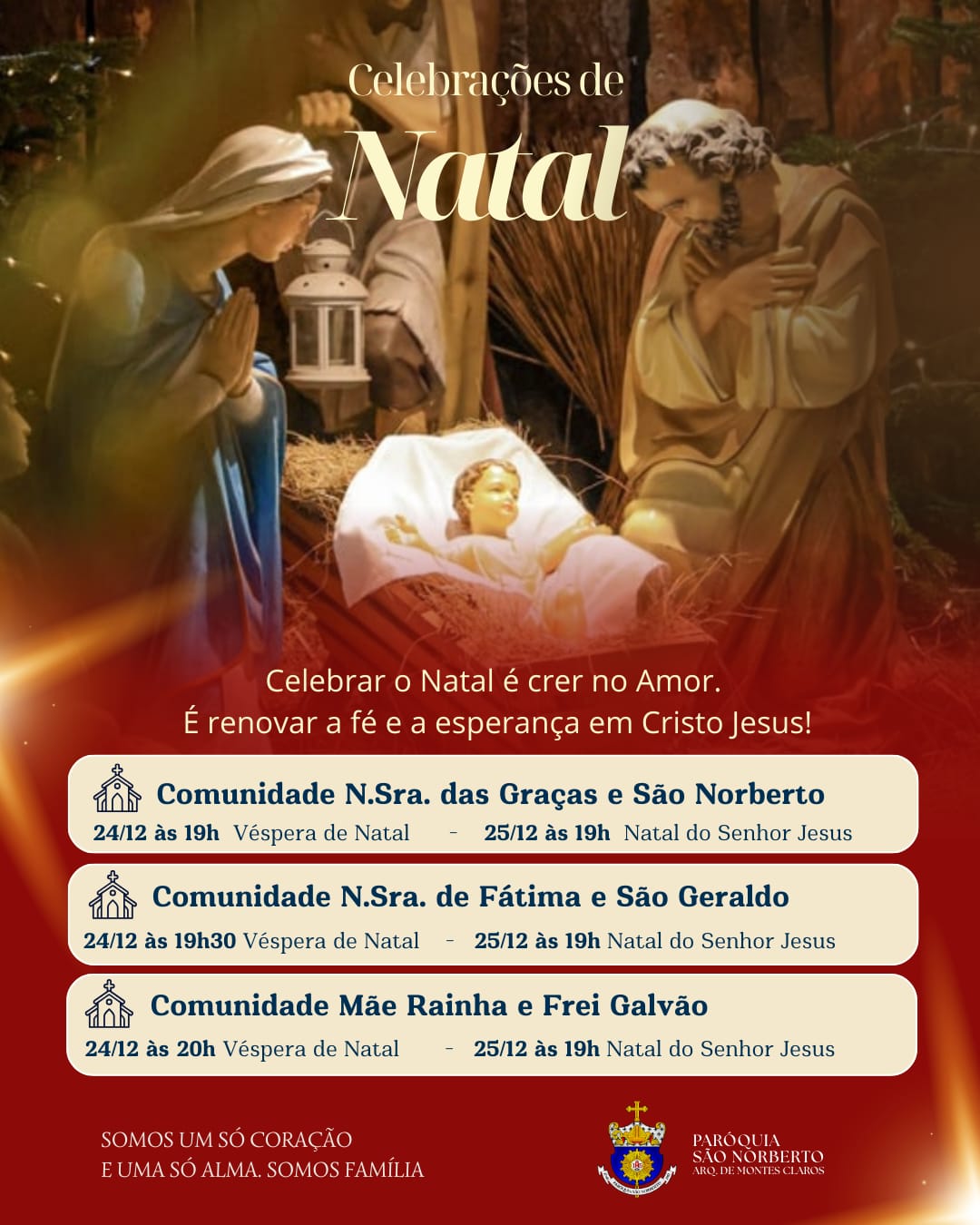 Que, ao redor da manjedoura, possamos renovar nossa esperança, fortalecer os laços de fraternidade e deixar que a Luz de Cristo ilumine nossas famílias, comunidades e toda a sociedade.