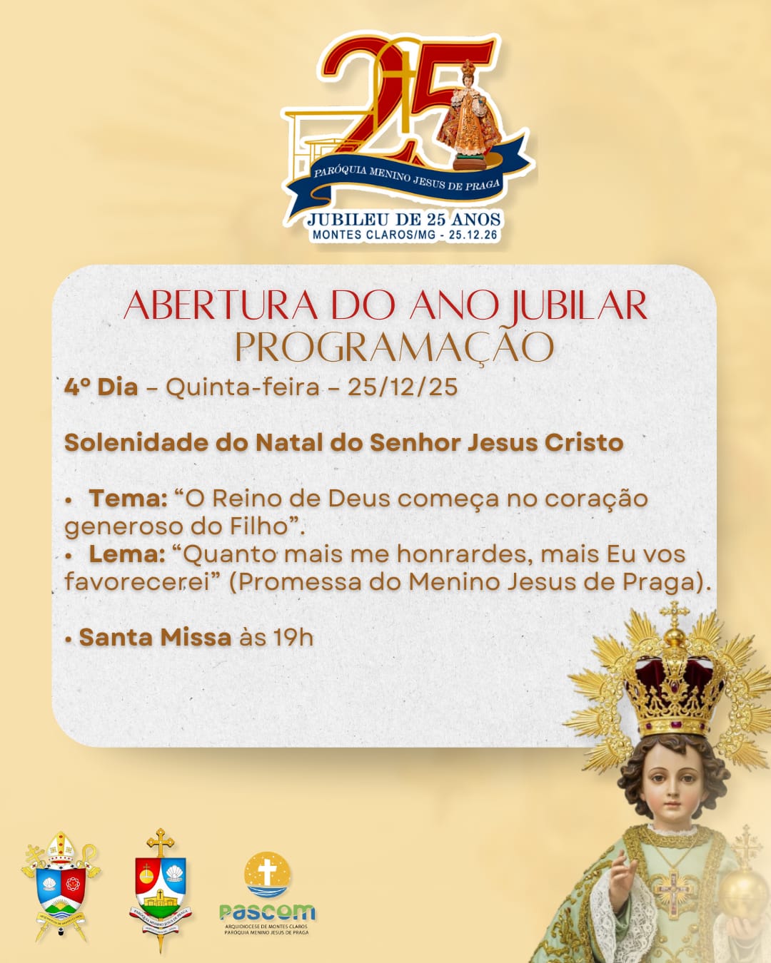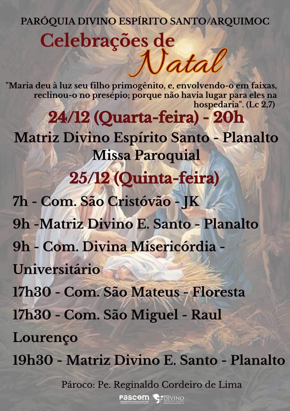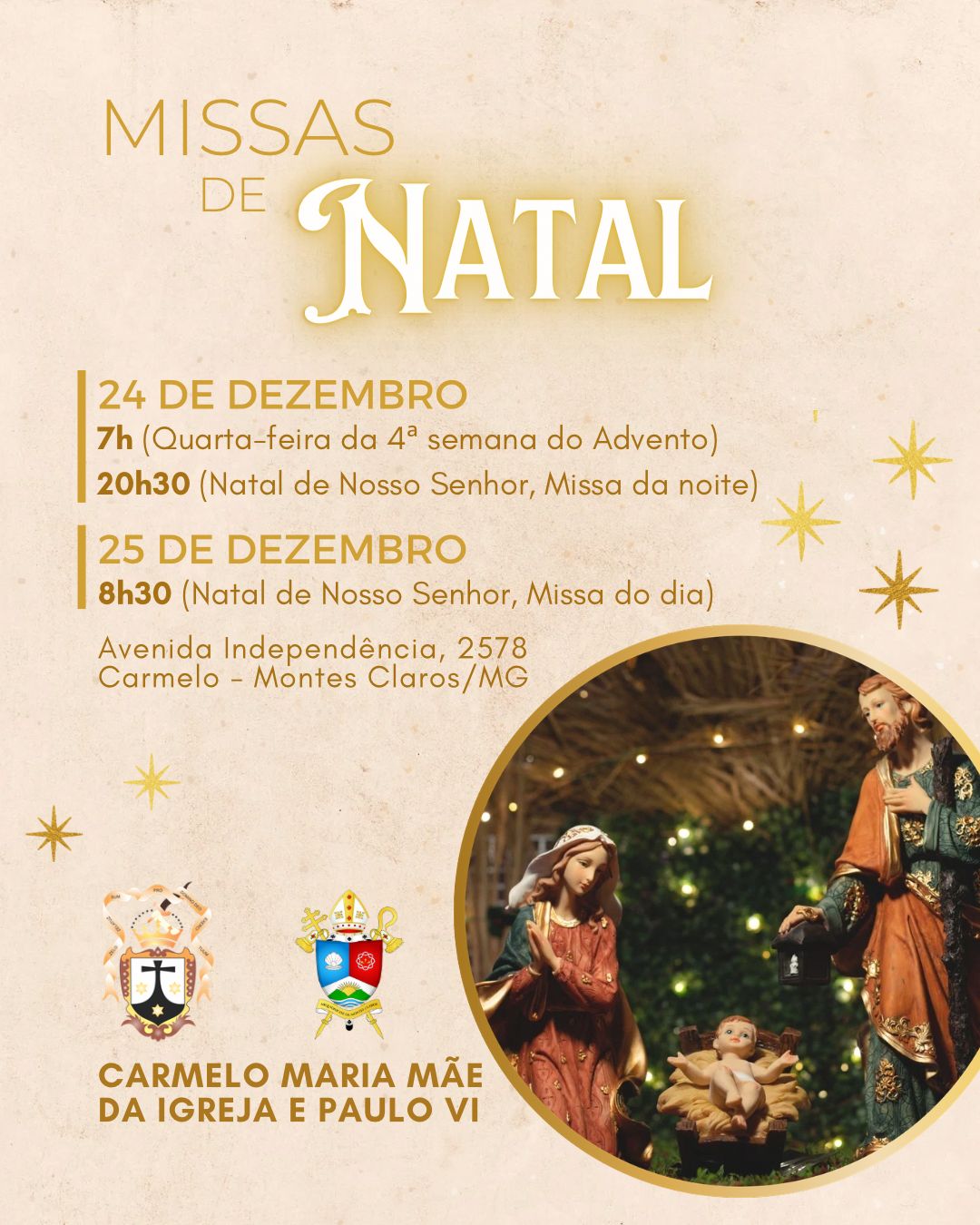 Que, ao redor da manjedoura, possamos renovar nossa esperança, fortalecer os laços de fraternidade e deixar que a Luz de Cristo ilumine nossas famílias, comunidades e toda a sociedade.