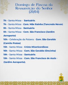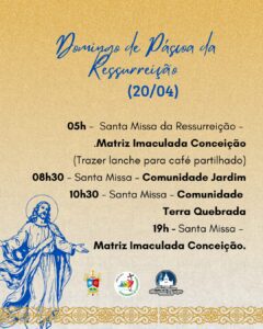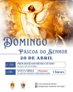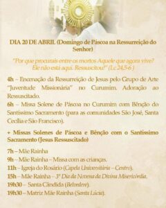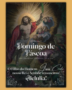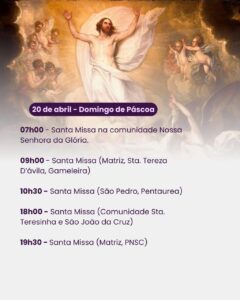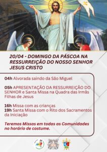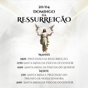 O Domingo de Páscoa da Ressurreição do Senhor é a grande festa da vida nova. Jesus venceu a morte e nos convida a renascer com Ele. A liturgia pascal nos lembra que a ressurreição não é apenas um fato do passado, mas uma realidade presente na vida de todos os que creem. A Páscoa inaugura o tempo pascal, que se estenderá por cinquenta dias até a Solenidade de Pentecostes, celebrando a presença viva do Ressuscitado em meio ao seu povo.