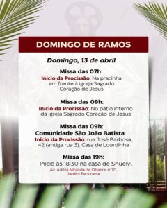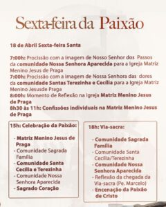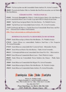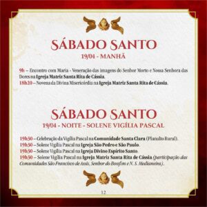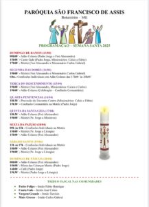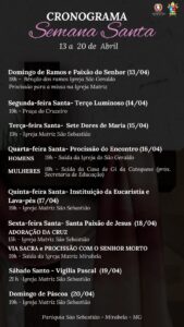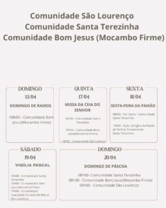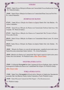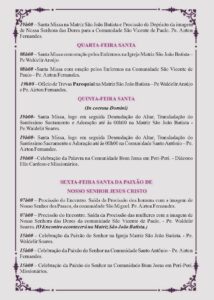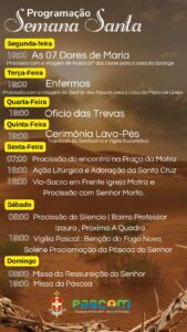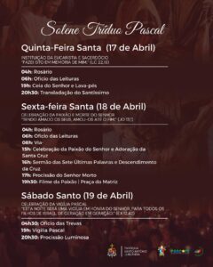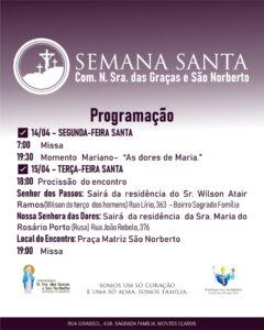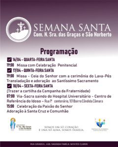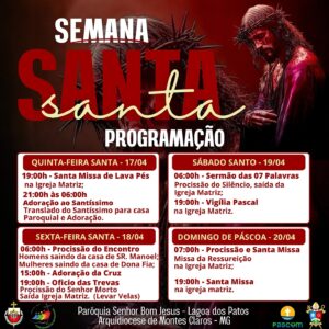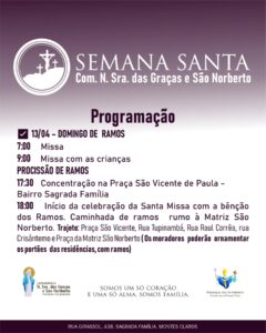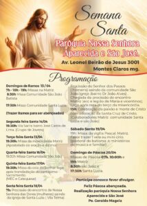 Confira a programação das celebrações nas paróquias e cidades da Arquidiocese de Montes Claros: