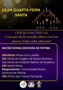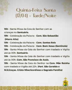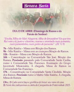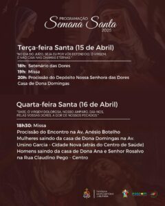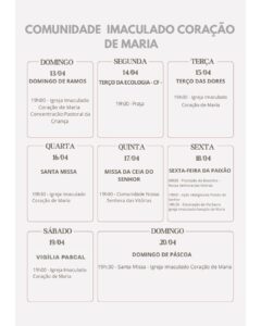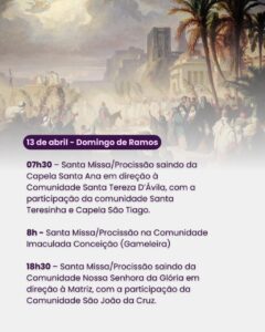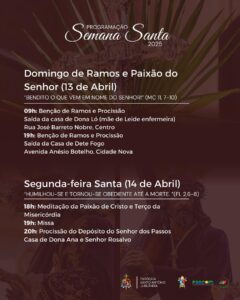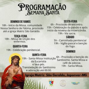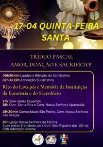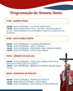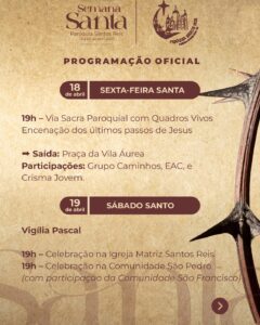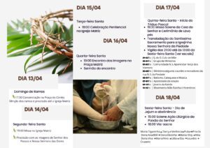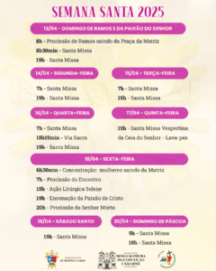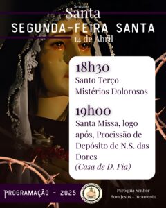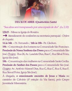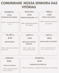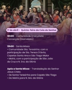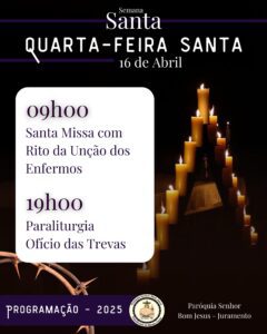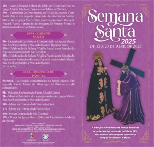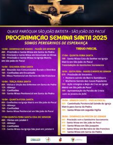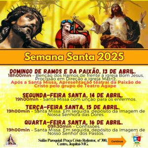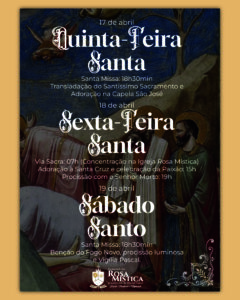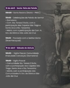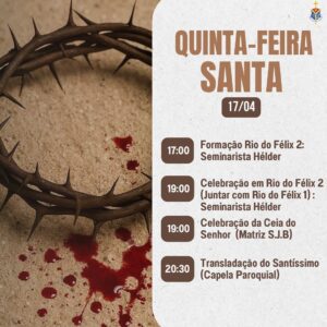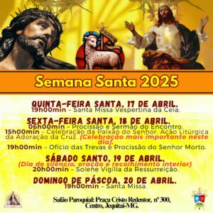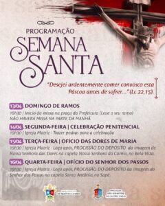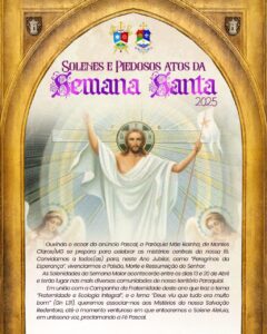 Viver a Semana Santa é mais do que recordar acontecimentos: é entrar no mistério do amor de Deus, que se entrega por nós e nos chama à conversão. É tempo de voltar o coração ao essencial, de renovar a fé, e de permitir que a cruz e a ressurreição de Cristo transformem a nossa vida.