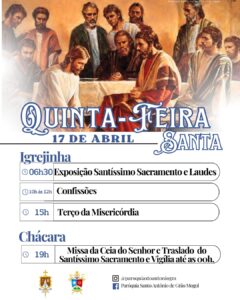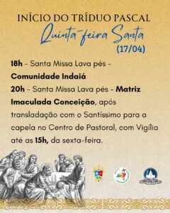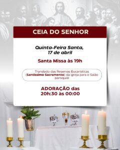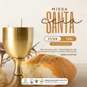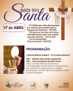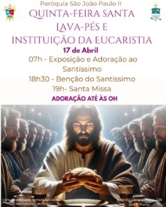 Na Quinta-feira Santa, à noite, acontece a Missa da Ceia do Senhor, na qual se recorda a instituição da Eucaristia e do sacerdócio ministerial. Durante esta celebração, o gesto do lava-pés, realizado por Jesus, revela o coração do seu ministério: o serviço. Após a Missa, o Santíssimo Sacramento é levado para um lugar de adoração silenciosa, recordando a oração de Jesus no Horto das Oliveiras e sua entrega total ao plano do Pai.