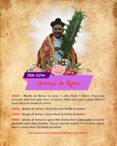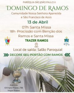 A celebração se inicia com o Domingo de Ramos da Paixão do Senhor, que une dois momentos marcantes: a acolhida de Jesus com ramos e cantos festivos, e a leitura da narrativa de sua paixão. A liturgia nos lembra que o mesmo povo que o aclamou como rei, depois o rejeitou. Essa contradição nos faz refletir sobre nossa própria fidelidade a Cristo e sobre o caminho da cruz como parte do seguimento verdadeiro do Senhor.