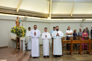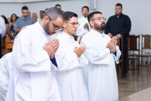 Os seminaristas, Halisson Douglas Caldeira, Rafael Augusto Ferreira e Vitor Thaun dos Santos, foram admitidos às Ordens Sacras na última terça-feira, 19, Solenidade de São José. A missa com o rito de admissão foi celebrada no Seminário Maior Imaculado Coração de Maria, em Montes Claros.