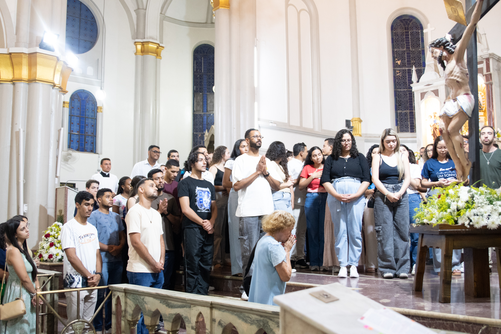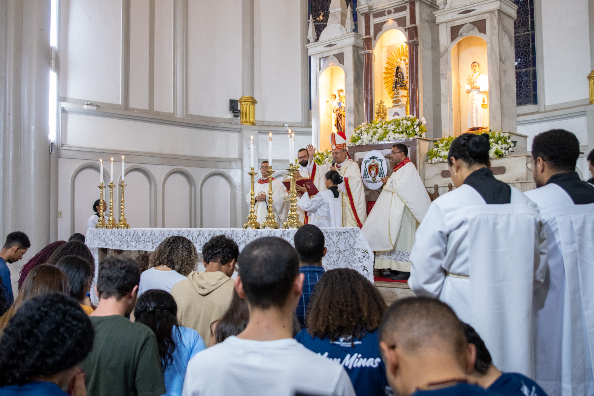 Em um gesto de proximidade e bênção, Dom José Carlos convidou os universitários presentes — alunos, professores e representantes de faculdades presenciais e virtuais — a se aproximarem da imagem do Senhor do Bonfim. O arcebispo motivou-os a colocarem diante de Deus seus estudos, saberes e buscas, pedindo que a razão de cada um seja iluminada pela fé.